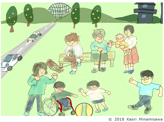 地域には様々な人々が暮らしています。健康な人、病気や障害を抱えている人、子ども・妊産婦・高齢者・外国人など特別な配慮を必要とする人など、多様な人々が多様な価値観をもって生活しているのが地域です。そのような人々自身と環境、そして社会システムに働きかけて、健康な社会づくりに貢献するのが地域で活動する看護職の役割です。